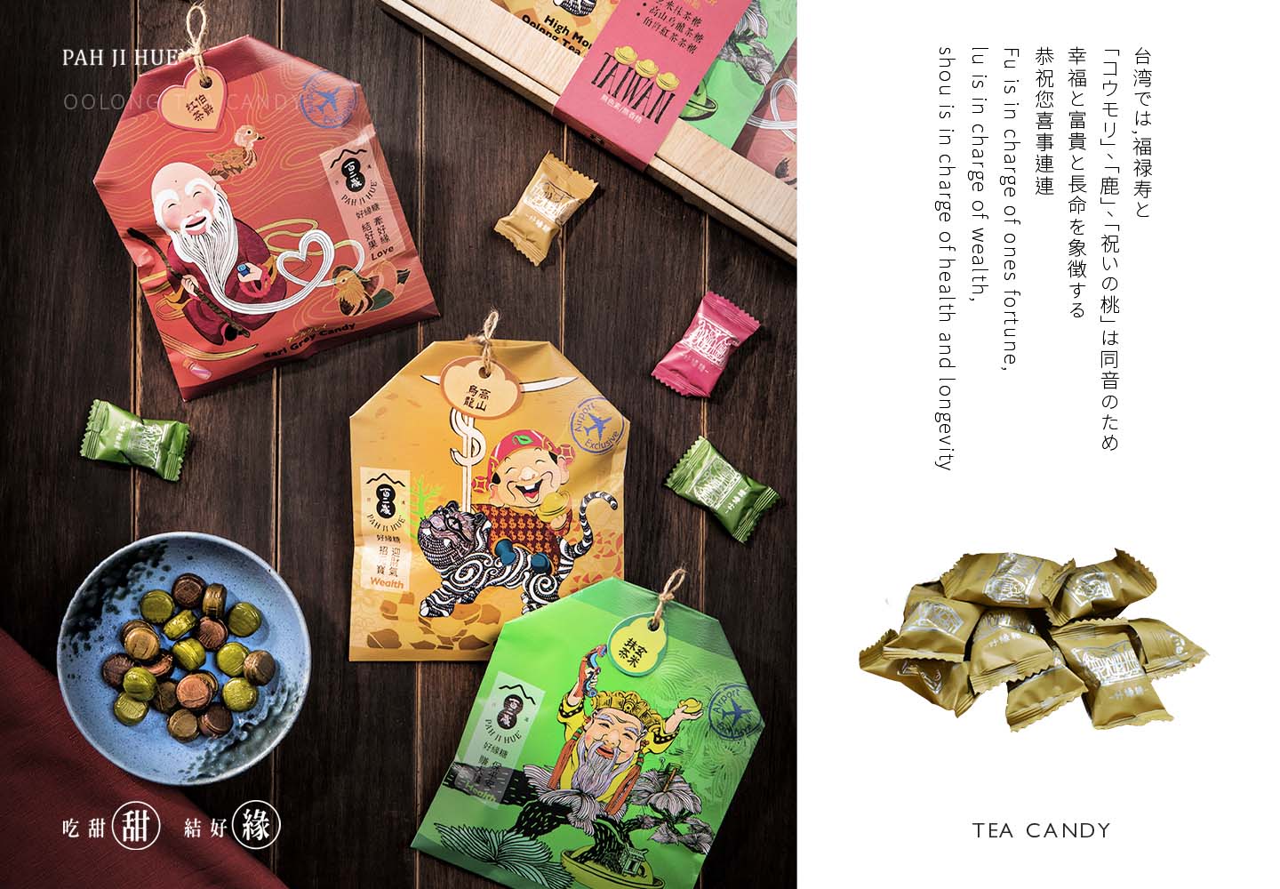 包裝更結合了台灣常見的三位神祇,土地公、月老、財神爺,有保平安、牽姻緣、招財運的意涵。